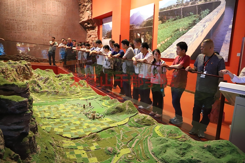 紅旗渠紀念館不僅是一座以研究、展示、傳承、收藏紅旗渠歷史的一座展館。也是我們學員感悟“自力更生、艱苦創(chuàng)業(yè)”的紅旗渠精神的一個重要窗口。學員們在展館前留念,并進行現(xiàn)場教學。