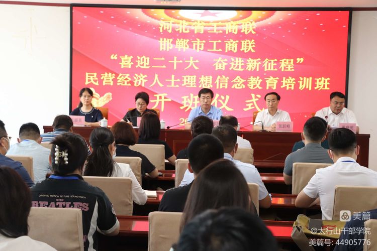 6月23日—25日,河北省工商聯(lián)、邯鄲市工商聯(lián)在我院舉辦了“喜迎二十大 奮進新征程”民營經濟人士理想信念教育培訓班。23日下午,省工商聯(lián)黨組成員、副主席尚德志,市委常委、統(tǒng)戰(zhàn)部長張躍峰出席開班儀式并講話,市政協(xié)副主席、市工商聯(lián)主席曹淑霞主持開班儀式,涉縣縣委書記董路明致歡迎辭。